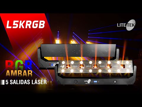 The Lite Tek L5KRGB Laser Bar is a high-performance animation effect capable of generating captivating, whimsical shapes through its five laser outputs. These outputs produce a stunning combination of red, green, and blue tones. To further enhance the visual spectacle, the laser bar incorporates amber LEDs, creating an impressive interplay of light and color.